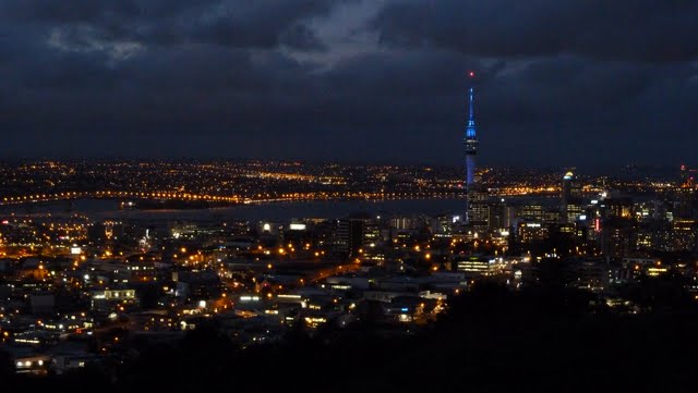 Danach bin ich weiter nach Auckland gefahren. Dort angekommen bin ich auf den Mount Eden gestiegen - der höchste Hügel (stiller Vuklan) in Auckland, von dem man aus einen super Blick auf die Stadt hat. Es dämmerte und wurde dunkel. Ich konnte ein paar schöne Nachtbilder schiessen.
